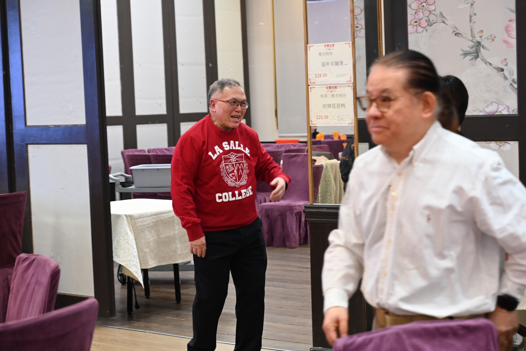 The evening was elevated by the presence of beloved retired teacher Mr. Chan Tong, whose attendance was met with great warmth, as well as representatives from ten joint-school alumni groups. The dinner programme gained tremendous momentum with a lively mid-event auction, which not only stirred excitement but also successfully raised valuable funds for the chapter. We extend our sincere thanks to Thomas Lau (69) for contributing a captivating collection of old campus photos from La Salle College. Congratulations to Stlina Kwok, the winning bidder and keeper of Kevin Kwok (88), on her successful acquisition.